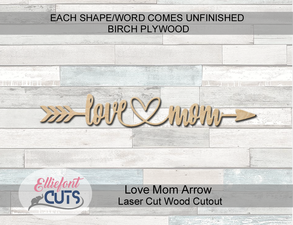 Laser Cut Wood Cutouts Love Mom Wood Words